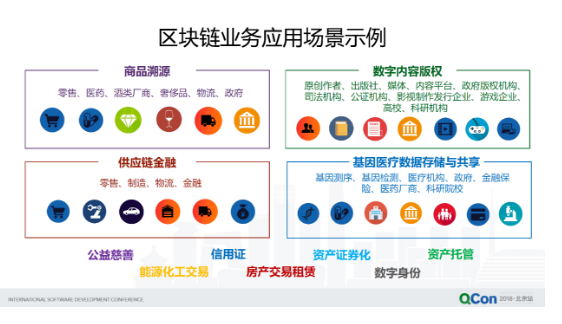 区块链的业务应用场景非常的丰富,相信大家在国内外也看到了很多落地的案例,这里我也大概列举了一些。比如说公益慈善、信用证、资产证券化、资产托管等等,我也会介绍一下在一些重点的场景上面,区块链的价值以及面临的挑战是什么。