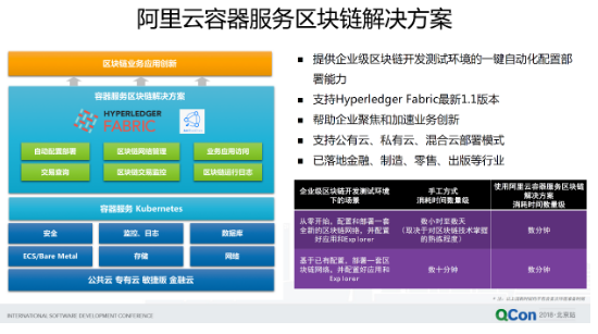下面的话,是介绍我们在探索过程中用到的工具,就是去年 10 月份,我们在杭州云栖大会发布的基于阿里云容器服务的区块链解决方案。这其实是我们在区块链领域探索的第一小步,目前我们也在紧张地开发一些更新的产品形态和更多的落地方案。