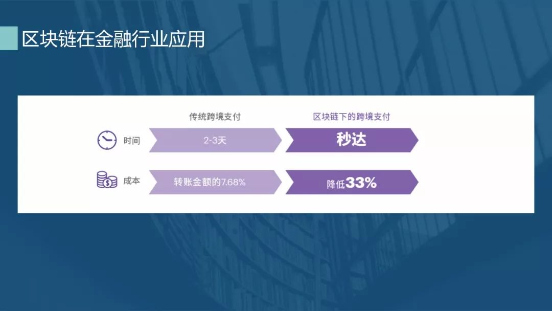 跨境支付方面,目前市场上跨境支付存在中心节点的问题,商业机构之间对账导致跨境交易时间变长,一笔交易对账可能需要几天的时间。