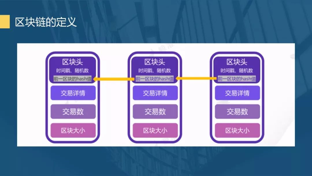 分布式存储就不会存在这样的问题,历史上产生过的每一笔交易,每个节点的账本都有记录。在区块链或者说比特币的结构中,每笔交易的信息,包括币的产生、币的交易,都会产生一个区块,区块里包括了交易信息和时间,通过时间戳、随机数和前一区块的哈希值算一个新的区块,新的区块中包括当前产生的交易内容、数额大小和整个区块大小,区块链就是这么来的。随着交易的增加,链会越来越长,链上的所有信息都不可删除不可篡改。