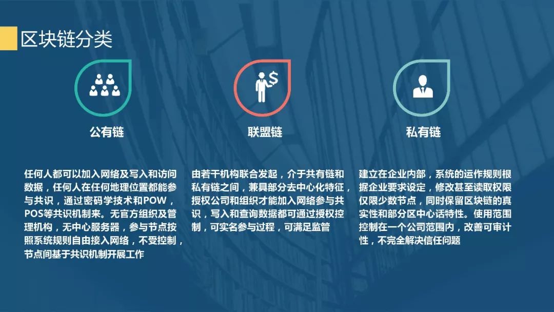 根据应用场景不同,区块链可以分为三类:公有链、联盟链和私有链。