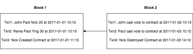 以太坊中每笔交易都存储在区块链上。当你部署合约时,一次部署就是一笔交易。当你为候选者投票时,一次投票