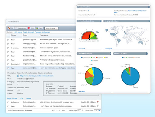 Kampyle可以让你在你的网站出现一个在线发送反馈信息的按钮,点击此按钮可以弹出调查表,让访客可以反馈信息。Kampyle提供了反馈表单模板,你只需要简单修改即可,另外Kampyle还提供了丰富的反馈统计功能