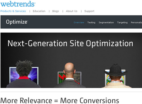 优化重点在于发现市场潜力和精准的投递内容。世界上数以千计的网站智能企业,包括半数以上的财富和全球500强企业,正依靠WebTrends提高他们的网站转换率、优化他们的市场营销效果,以获得更高的投资回报。作为全球网站分析行业的领导者,WebTrends凭借其多次获得业界大奖、全面地咨询服务和无与伦比的专业经验,而成为Web分析行业最权威的衡量标准。通过其提供的按需服务和各种软件产品,WebTrends帮助用户获得精确的、可被执行的Web分析数据。