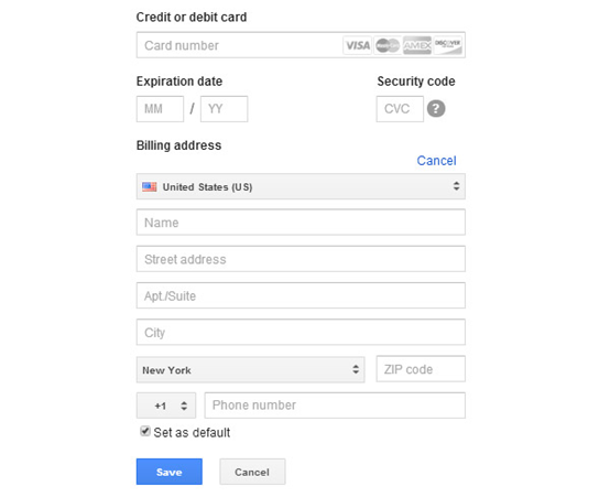 谷歌在用户为其谷歌钱包添加信用卡时,所用的表单设计就做得非常好。Skype也是如此。