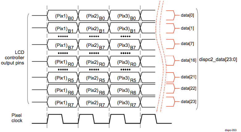 以 OMAP5432 为例,下图是它所支持的一种并行数据传输:
