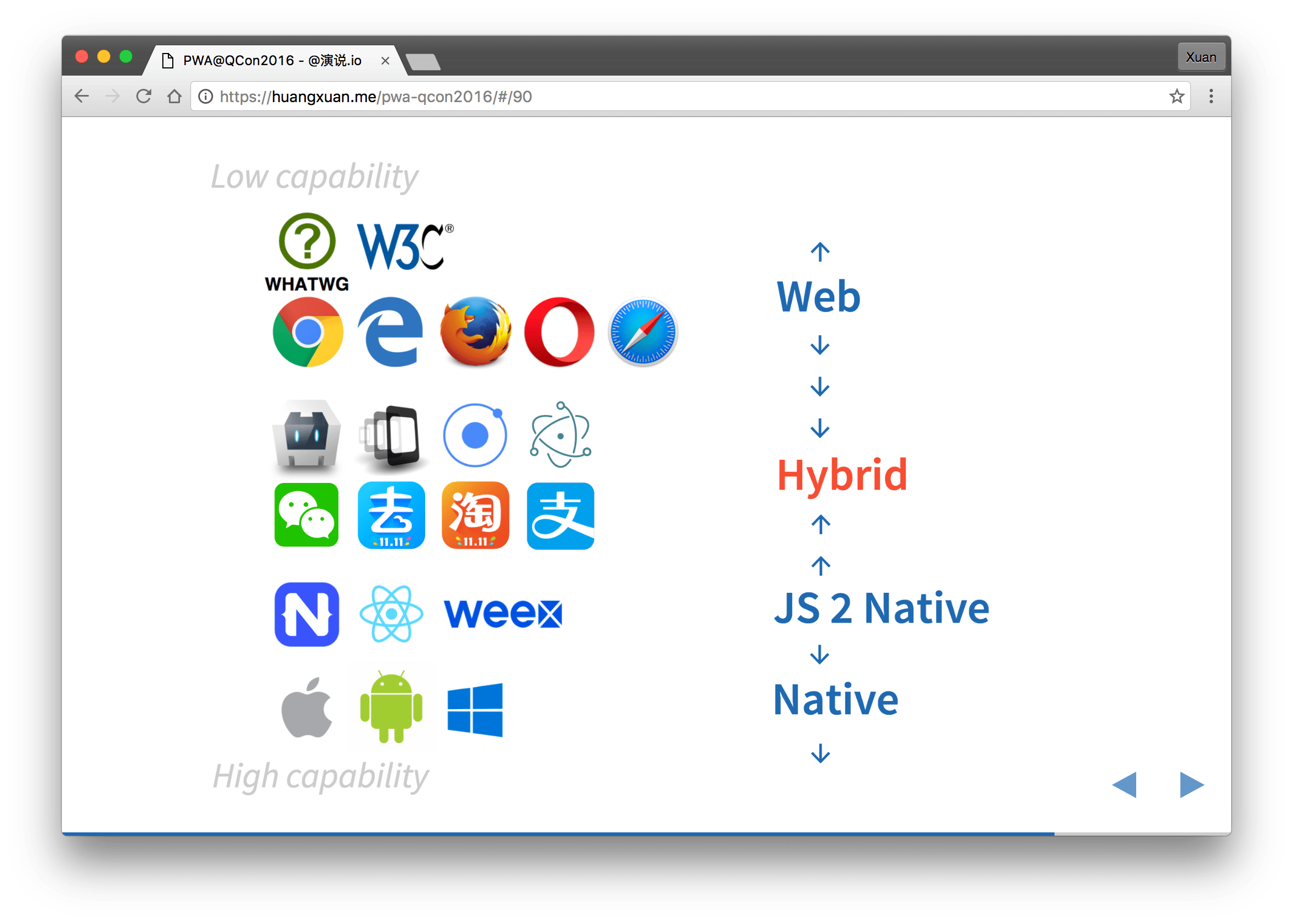 Web 与原生应用,我们还有各种不同程度的 Hybrid,还有今年爆发的诸多 JS-to-Native