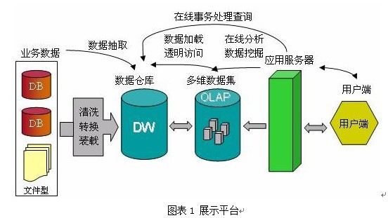 3、数据中心平台分别由操作数据存贮(ODS)、数据仓库(和数据集市)、OLAP服务和J2EE应用服务器组成。通过应用适配器,按照业务需求订阅,并进行信息集成和存贮到ODS中;ODS中的数据最终会按照时间和主题批次装载到数据仓库,日常查询不需要涉及的数据就直接集成和存贮到数据仓库中;数据仓库可能有小部分数据要回流到ODS中。