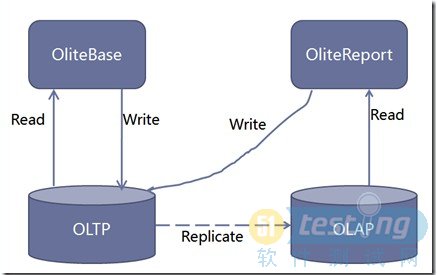 对于原来的系统结构,其Application端已经是两个独立的站点OliteBase和OliteReport。所以只要把OliteBase和OliteReport的数据库进行分离,在分离后的两数据库间进行数据的同步就行了。这里的关键在于如何进行数据库间的同步。