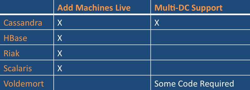 与我们先前通过昂贵硬件之类的手段尽力去避免失效的手段不同,NOSQL实现都建立在硬盘、机器和网络都会失效这些假设之上。我们需要认定,我们不 能彻底阻止这些时效,相反,我们需要让我们的系统能够在即使非常极端的条件下也能应付这些失效。Amazon S3 就是这种设计的一个好例子。你可以在我最近的文章 Why Existing Databases (RAC) are So Breakable! 中找到进一步描述。哪里,我介绍了一些来自 Jason McHugh 的讲演的面向失效的架构设计的内容(Jason 是在 Amazon 做 S3 相关工作的高级工程师)。