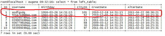 备注: 测试过程中,更新ID=1 和 ID=4 的纪录。