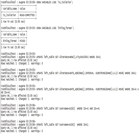 l 事务隔离级别为:RR情况下,binlog_format设置为MIXED,mysqld服务会添加类似Oracle的hint内容,解决部分不确定性函数而带来的SQL重复执行无法获得相同记录值的问题;
