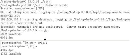 主机(OEL)的 /hadoop/hadoop-0.23.0/ 根目录下,我们使用 Hadoop 自带的
