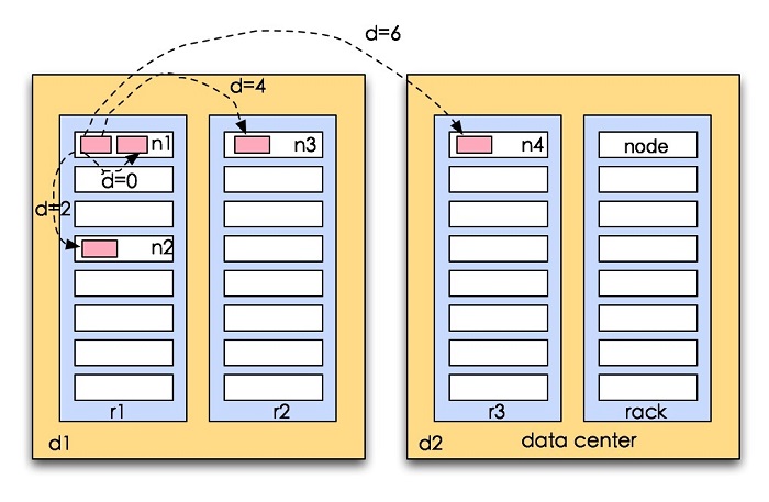 3.distance(d1/r1/n1,d1/r2/n3)=4 (相同数据中心不同机架)
