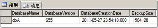 【注:】在结果集中, SQL Server 2008/R2 比 SQL Server 2005 多一个列”CompressedBackupSize”。