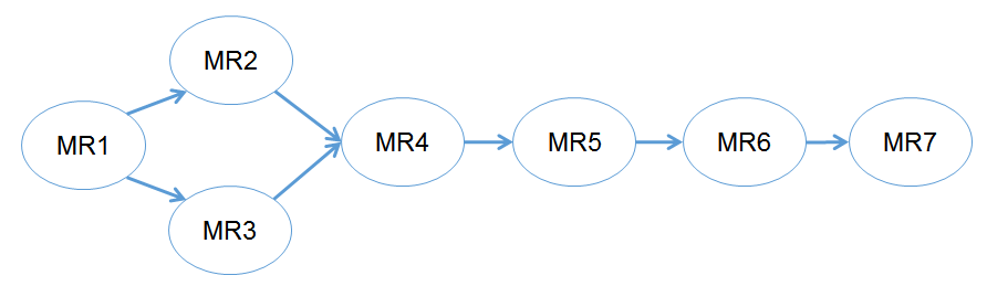 - 为了实现一个业务逻辑需要使用七个MapReduce作业,七个作业间的数据交换通过HDFS完成,增加了网络和磁盘的开销。