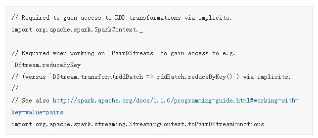 - 不要忘记import Spark和Spark Streaming环境: