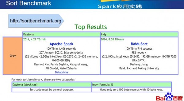 在2014 Sort Benchmark国际大赛上,百度成功夺冠,其幕后英雄无疑卓越的Shuffle机制,在孙垚光的分享中,我们对Shuffle的发展、细节和未来有了一次深度的接触。