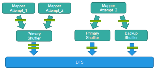 让New Shuffle模块专注于shuffle,不依赖于外部计算模块,从而计算模块可以专注于计算,同时还避免了磁盘IO。然而New Shuffle带来的问题也随之暴漏,其中影响比较重要的两个就是:慢节点和数据重复。