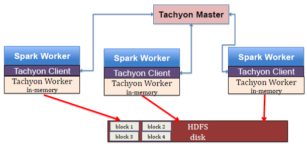 使用Tachyon,存储可以从Spark中分离处理,让其更专注于计算,从而避免了上述的3个问题。