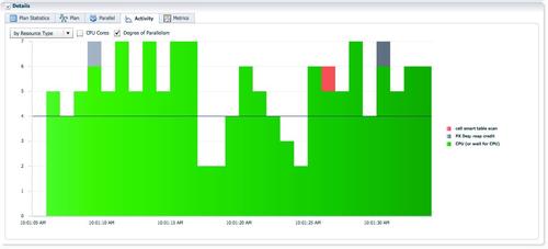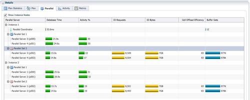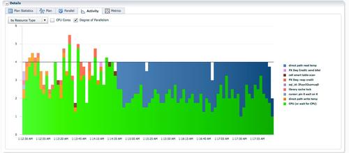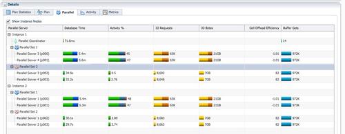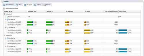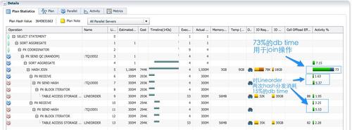 蓝色PX进程为消费者负责hash join,所消耗的db time都大幅增加了。