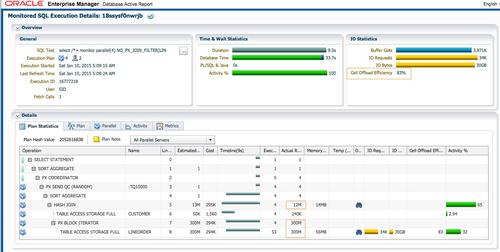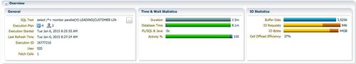 SQL执行时间为1.5分钟,dbtime为8.1分钟。相对于增加了14GB的IO操作。