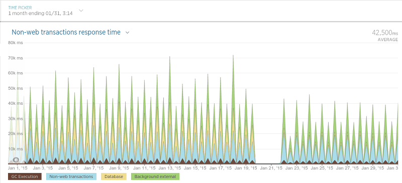 迁移是在1月21日开始的,高峰表示应用性能的硬重启(在处理期间导致交互时间轻微变慢)。在21日之后交互的平均时间大致是原来的一半。