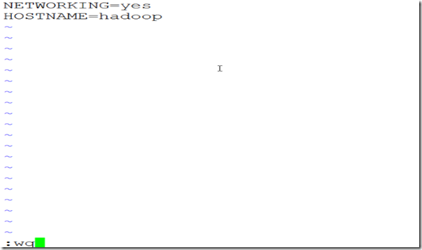 (2) 修改配置文件中的主机名,执行命令 vi /etc/sysconfig/network,将HostName属性改为hadoop,如图2.4,2.5