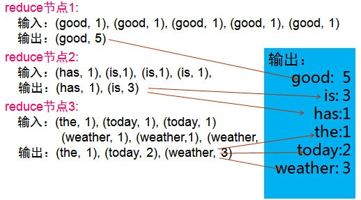 输出:(the, 1), (weather, 1), (is, 1), (good, 1)