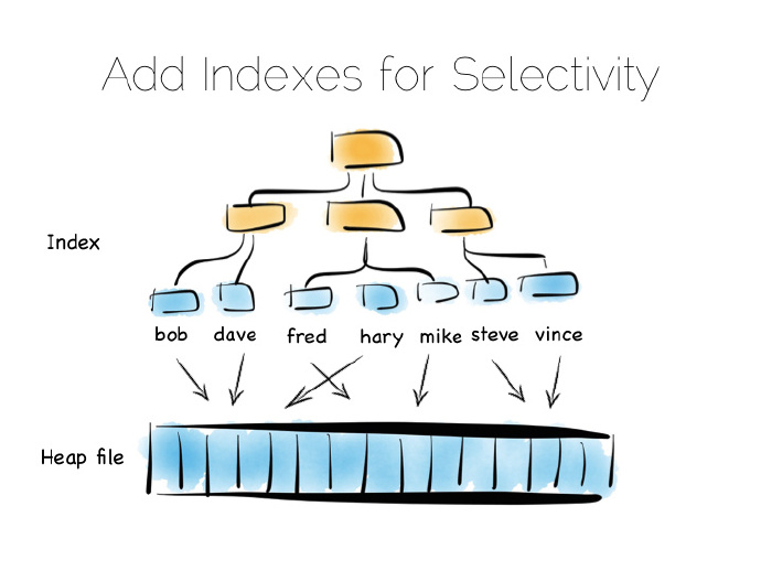 我们时常只需要一些特定的数据,比如名为“bob”的客户,这时扫描整个文件就不妥当,我们需要一个索引。