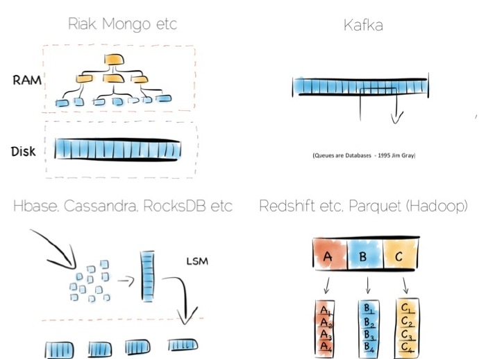 设计用来处理海量数据集的工具乐意采用LSM方式,这样可以快速获取数据,得到基于硬盘结构 读一样好的性能。HBase、 Cassandra、RocksDB、 LevelDB 甚至Mongo现在也支持这种方式。