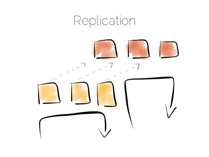 复制解决并发瓶颈,或许你熟悉备份,不论是异步到从服务器,还是复制到诸如Mongo或者Cassandra这样的NoSQL存储中。