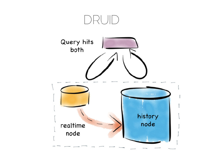 一旦查询Druid,请求就会同时派发到最佳写和最佳读控件中,对结果进行组合(移除冗余),返回给用户。Druid借助时间标记每条记录来进行排序。