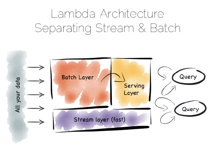 拉姆达框架保留了批量管线,不过增加了快速流层实现迂回,就像在忙乱的小镇架了一个支路,流层采用诸如Storm、Samza流处理工具。