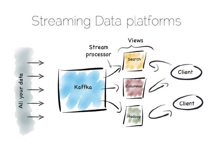 另外一种解决慢数据管道的方式,称之为卡帕(Kappa)框架。起初我以为这个架构名称不对,现在我不太确定。不管它是什么,我叫它流数据平台,其实这个已经有人这么叫了。
