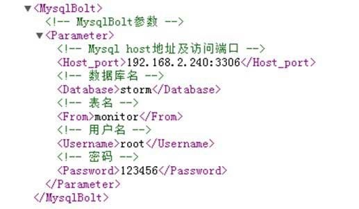 在MonitorBolt处理完数据之后将数据存入mysql的库表中,数据库相关配置从配置文件MysqlBolt.xml中读取。