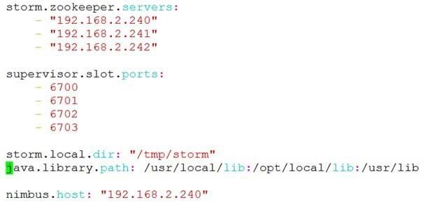 以上为mysql存储配置,mysql地址为192.168.2.240(在nimbus节点上安装有mysql),提前创建好storm数据库,在该库中创建表monitor。