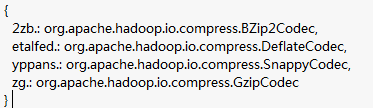 的配置信息在 core-site.xml 中 io.compression.codes 下。我们看下这段配置文件,如下图所示: