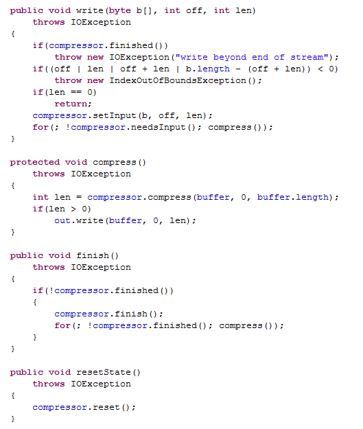 CompressorStream.class 提供了三个不同的构造函数,CompressorStream