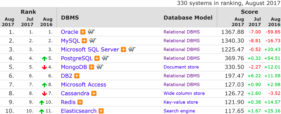 根据DB-engines网站的最新统计,不难发现,当把开源数据库MySQL和PostgreSQL加在一起,开源数据库就已经超越了商业数据库Oracle,成为世界上最流行的关系型数据库。