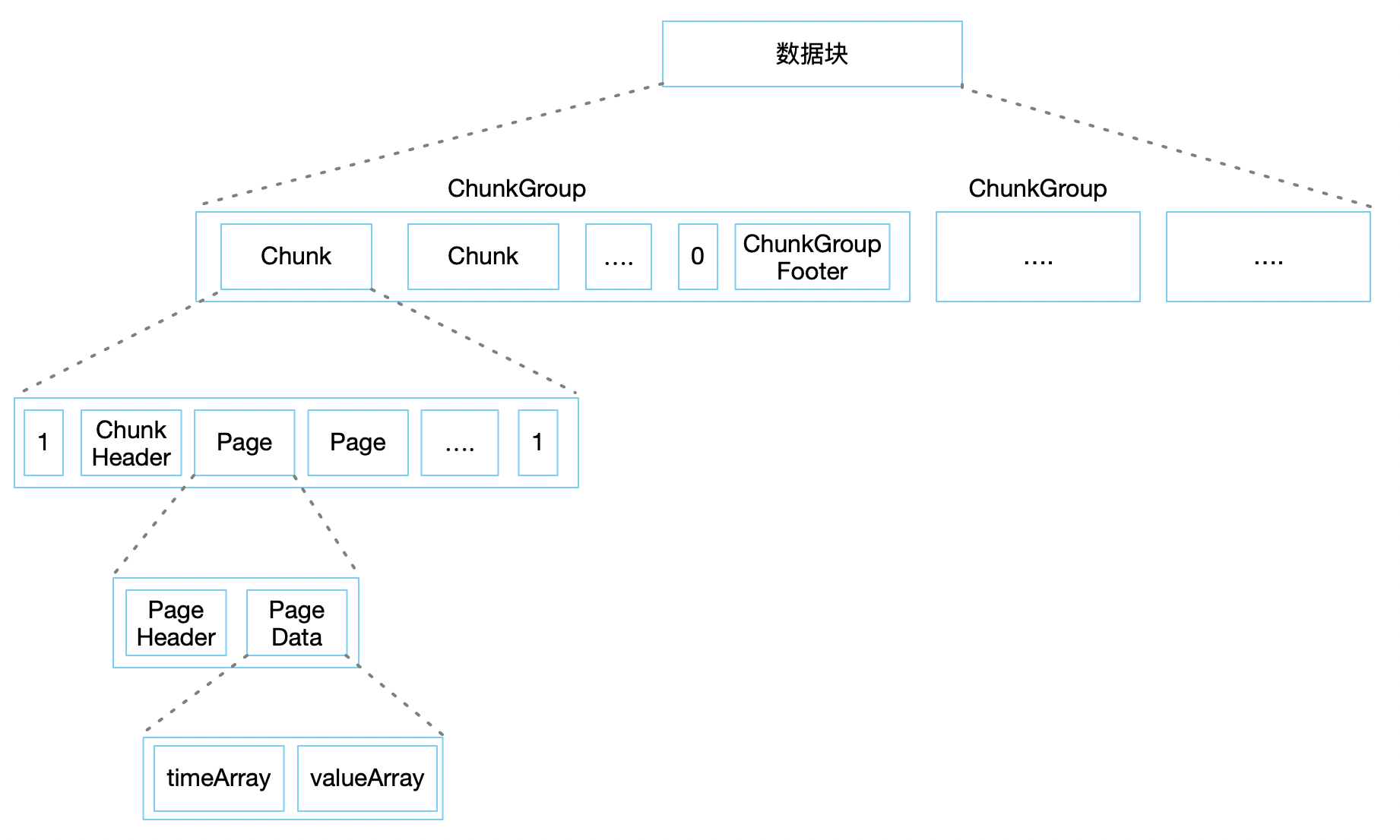 一个 ChunkGroup 中包含了多个 Chunk,它代表了测点数据(逻辑概念上的某一类数据的集合,如体温数据),在