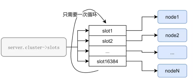 结合server.cluster中存放的集群信息,笔者认为此处可以使用server.cluster->slots进行遍历。因为server.cluster->slots已经在每一次集群的拓扑变化得到了更新,保存的是节点指针。