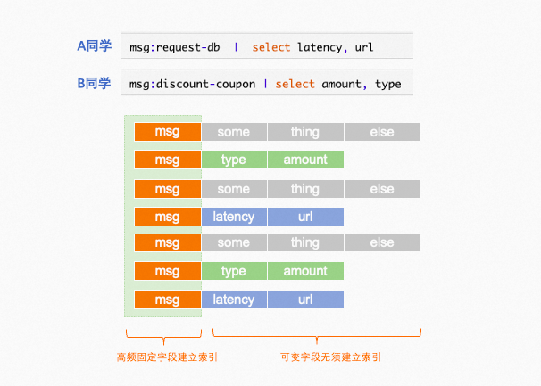 这样打印日志的时候,就可以针对特定场景自由的新增自己关心的特征日志用于分析,而不需要考虑索引的变更。
