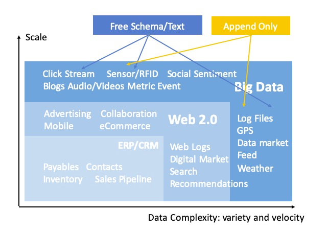正所谓天下没有免费的午餐,这种对数据模型的限制,反过来也会成为一种对灵活性的束缚。在大数据场景中,半结构化、无结构化的数据是非常常见的,因此也催生了
