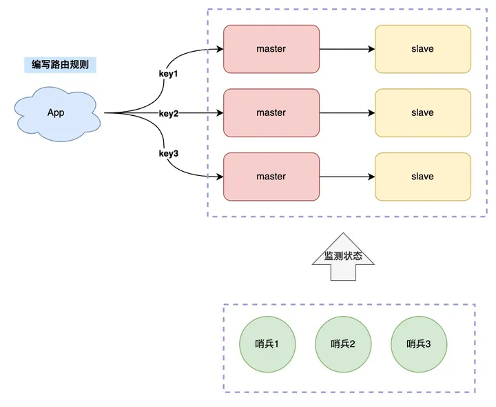 Redis 节点,都不知道对方的存在,只有客户端或 Proxy 才会统筹数据写到哪里,从哪里读取,而且它们都依赖哨兵集群负责故障自动切换。