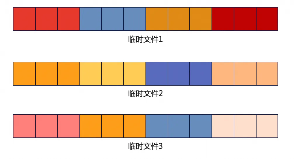 所有并行排序任务结束后,会得到3个有序的临时文件,不会再将这三个文件归并排序为一个文件:
