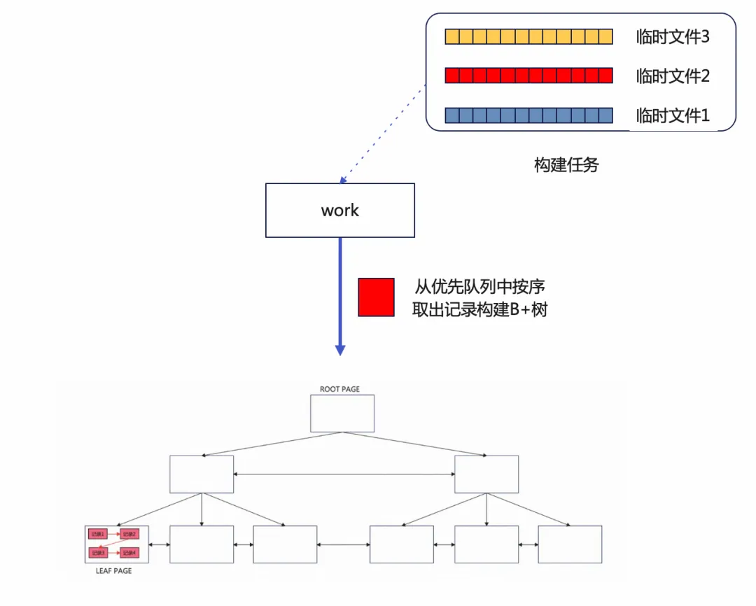 DDL的排序、构建都作为任务由work线程完成,work从任务队列取出任务来执行,通过任务状态确定是排序还是构建。