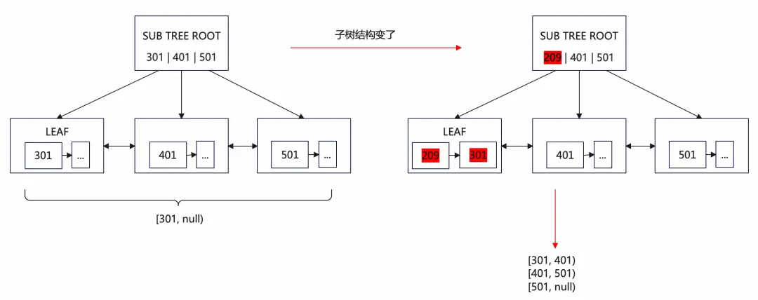 一棵B+树由多个子树构成,并行扫描通过将B+树划分为多个子树来做并行,每个子树的扫描作为一个并行任务,交由多个线程来并行处理。具体流程为: