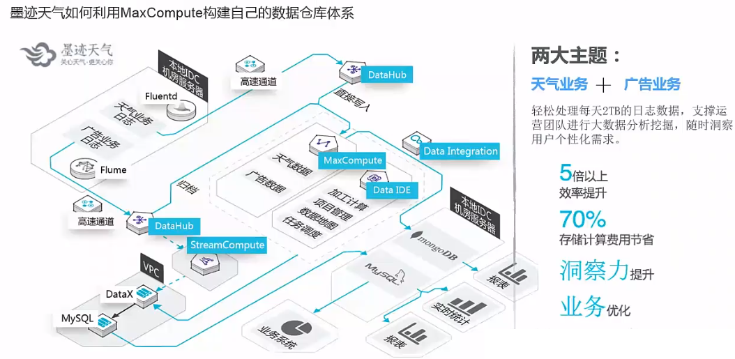 基于阿里云数加搭建大数据仓库的整个业务流程如下所示: