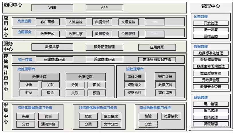 阿里云的数加架构主要分为数据整合、数据体系、数据应用三个层次,如下图: